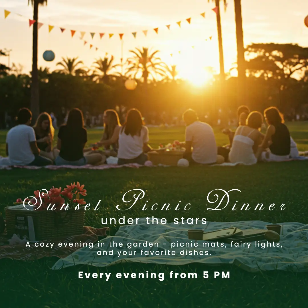 Make your evening magical with a Sunset Picnic Dinner under the Stars on Tuesday, July 1, at 5 PM in Canggu.